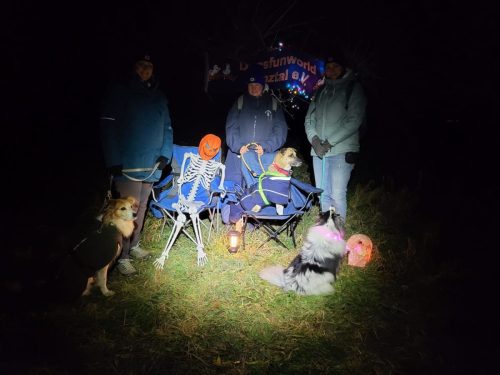 Auf der knapp 3km langen Strecke, erwarteten die Mensch-Hunde-Teams nicht nur knifflige Teamaufgaben, sondern auch so manches Spukgespenst.